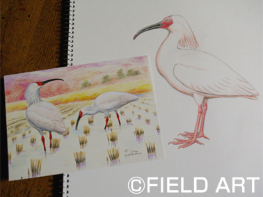 そんな日の鳥絵塾は出席者も少なかったですが、お正月というのでお題はトキ。