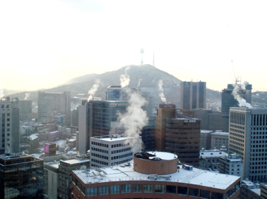 正面の山の上にうっすらと見えるのがソウル・タワーで、景色の良い部屋でした。