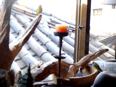 店内はオンドルや骨董品があって風情があるのですが、小さな小鳥さん達が放し飼いになっています。