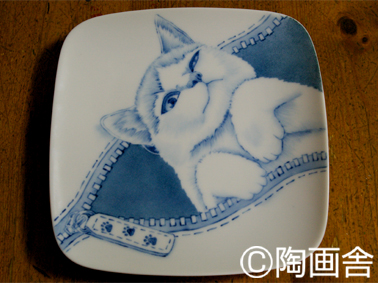 画像は前回の授業で描いた、イングレーズのネコのお皿。