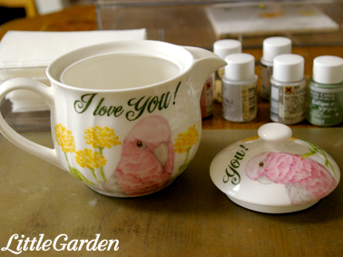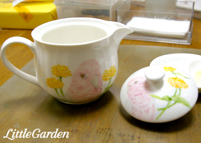 ポットの裏はインコさんの全身を描いたのですが、この部分はまた次回に。