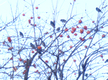 柿の木にもムクドリさん御一行が鈴なりで、20羽くらいは居ましたよ。