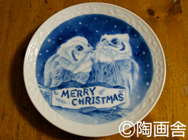 先週、特別講座で描いた「コノハズクのクリスマス」イングレーズのプレートです。