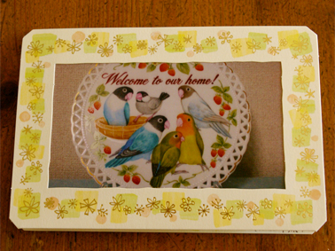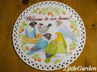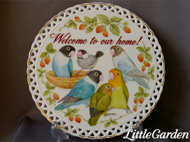 ラブバードさんと文鳥さんの、6羽描きのウェルカム・プレートが出来あがり。