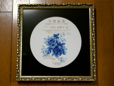 授業の後は、額装をお願いしていた卒業証書の陶板を受け取りました。