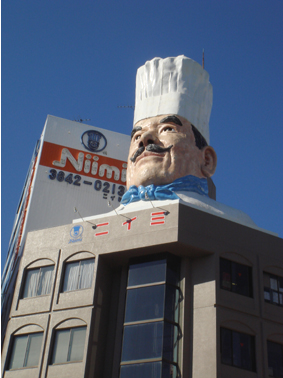 ニイミのビルの上では、相変わらずコックのオジさんが目立っていました。
