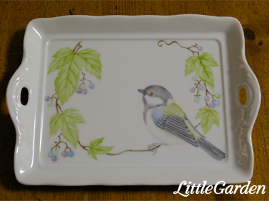 小さなミニ・トレーに、シジュウカラとヤマブドウを描きます。