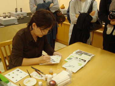 伊勢丹ギャラリーで、絵付けのデモンストレーション初体験でした。