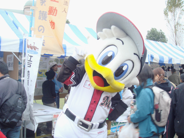 千葉県はロッテ・マリーンズのお膝元なので、マスコットのマー君がご来場でした。
