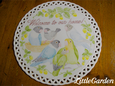 少し前に描いた文鳥さんのプレートも苺のモチーフを使いましたが、あちらはフルーツ・ブーケ。