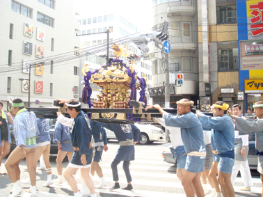 池袋はお祭りの真っ最中で、明治通りをズラッと町内会ごとのお神輿の行列が。