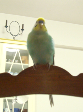 「青いトリが欲しい」というので一緒にデパートに行って、もっと目パチクリの紫がかったキレイな子がいたのですが先約があるということで梅ちゃんを連れて帰りました。