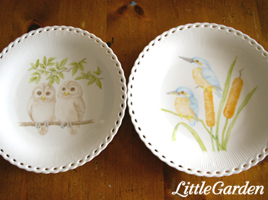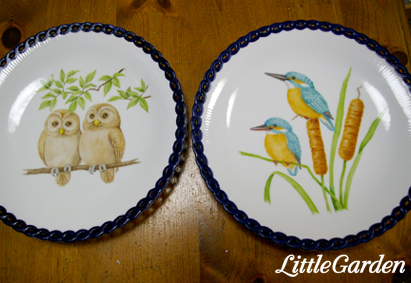 フクロウさんとカワセミさんのカップルのお皿です。