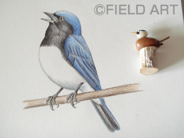 左のトリさんミヤマホオジロはカマツカというバラ科の植物の実を食べるそうなので、それと一緒に描きました。