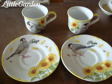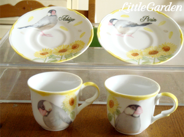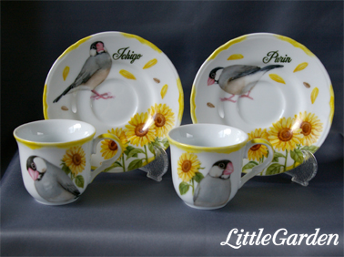 文鳥さんの姉妹、いちごちゃん&ぷりんちゃんのデミタス・カップ&ソーサーが出来上がりました。