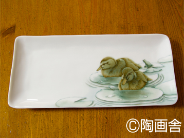 前回に仕上げた、子ガモの兄弟のお皿を受け取りました。