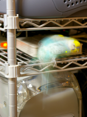 Mac関連のプリンターやスキャナーをまとめているラックなのですが、ここ数日梅ちゃんは何故かこの場所がお気に入り。