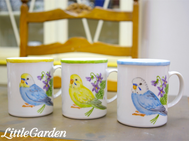 最後の最後にセキセイさんのマグ・カップを3個、色を変えて描いています。