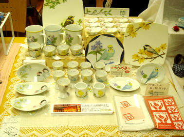 割り当てのスペースが淋しいとイケナイので、得意の奥の手‥トリ扱いシールと展示品のお皿も持参します。