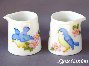 新作は青い鳥のミルク・ピッチャー、いつものインコさん・文鳥さん路線とは雰囲気を変えてみました。