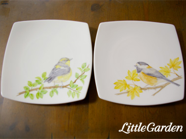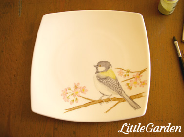 野鳥のお皿の最後の1枚、春のシジュウカラ。