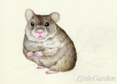 他の絵付けをしても一緒にお窯に入れられないので、後の時間は年賀状用にジャンガリアン・ハムスター(のつもり)を描いてみました。
