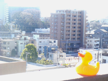 数メートル飛んでは水に浮かんでを繰り返していましたが、電気街のすぐ側なので周囲はビルだらけ。