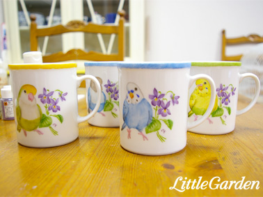 帰宅してからはインコさんとスミレのマグカップの仕上げを。