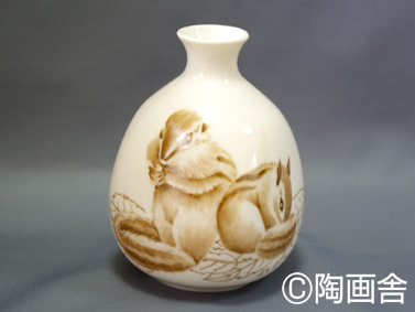 画像は絵付けの学校の動物講座で、置き時計の合間に描いた「リスの花瓶」です。