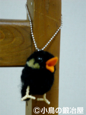毛糸のポンポンで出来た、九官鳥のおチビさんです。