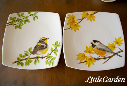 卒業製作の残り半分、キビタキの夏のお皿とヤマガラの秋のお皿。