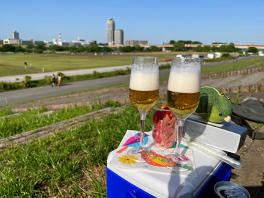 荒川沿いでオサレにビールランチ、仲良しのリトルガーデン家の朗らかなGWですね!