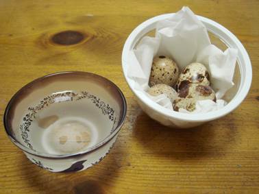 昨晩はガラス工芸作家のNaiadeさんから頂いた、自家製産みたてウズラ卵を頂きました。