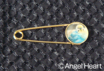 ピンの飾りの部分に梅ちゃんの写真が入って、樹脂でちゃんとコーティングしてあります。