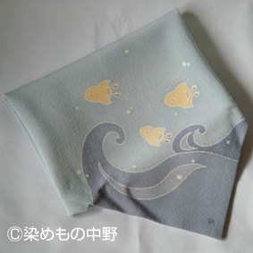 写真ではうまく色が出ませんが、このふくさも微妙なブルー・グレーでとっても綺麗。